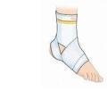 Infilare la cavigliera come un calzino. Applicare la benda elastica al tassello situato in corrispondenza del collo del piede in modo che la parte ad asola sia rivolta verso il lato interno della caviglia in caso di lesioni esterne, o verso il lato esterno in caso di lesioni interne della caviglia.